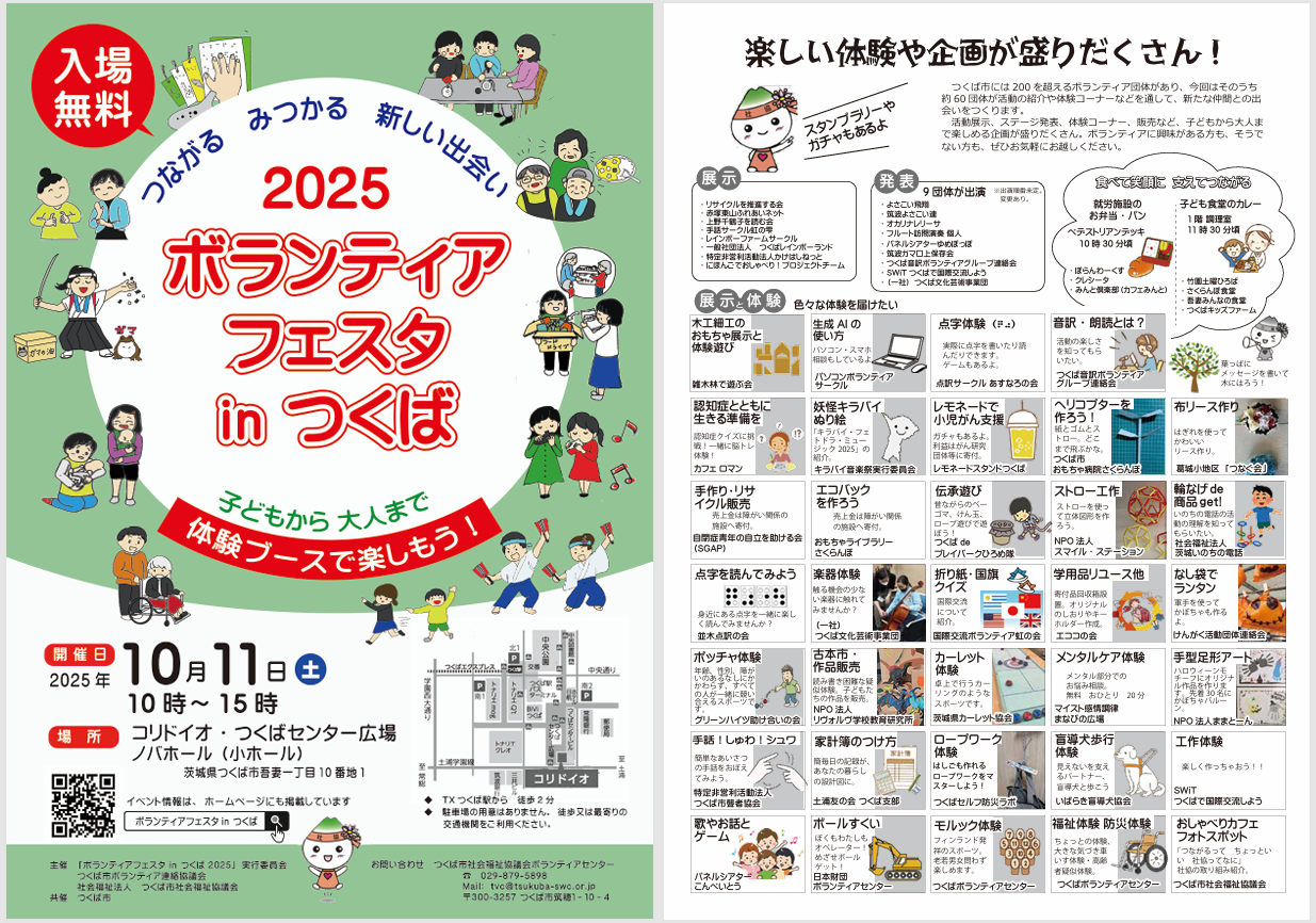 つくば市社会福祉協議会 ボランティアセンター主催の「2025 ボランティアフェスタinつくば」開催されます。