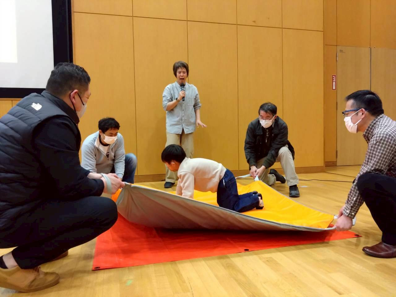 (↑地震体験マット「YURETA」を体験)